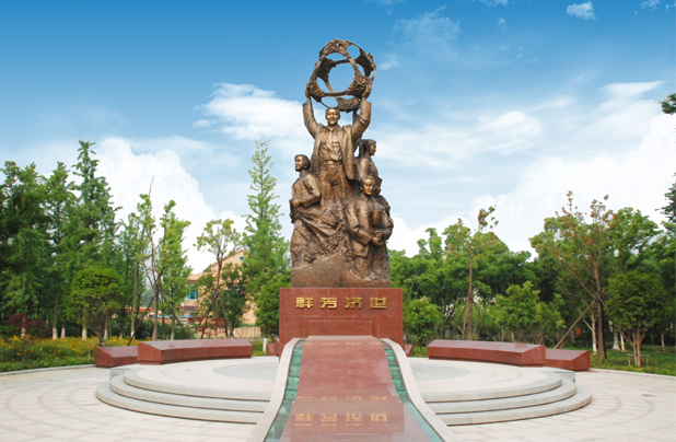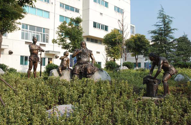 制藥場景園,位于新老廠區(qū)結(jié)合部,由大型文化石、音樂噴泉和三組銅制雕塑小品等景點組成,制藥場景園就得名于雕塑小品。